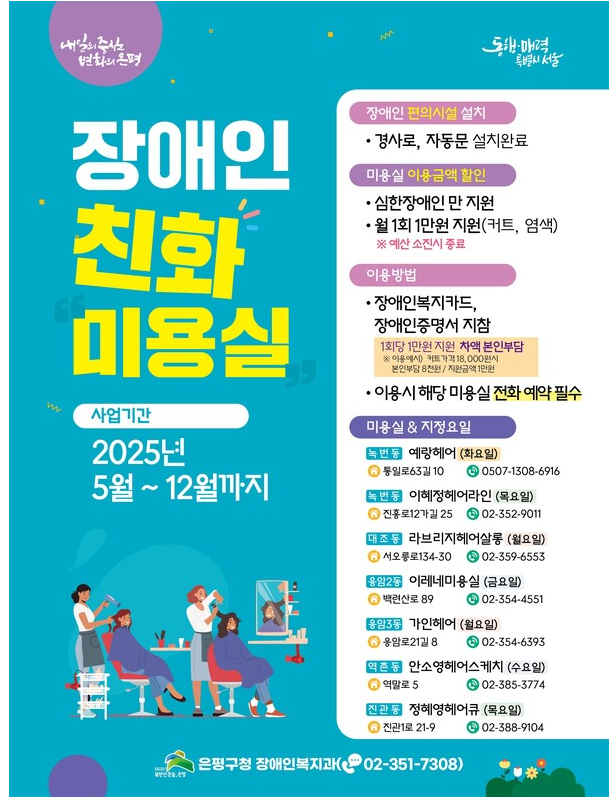 2025년 현재, 은평구 내 장애인 친화 미용실은 다음과 같은 방법으로 이용 가능합니다.